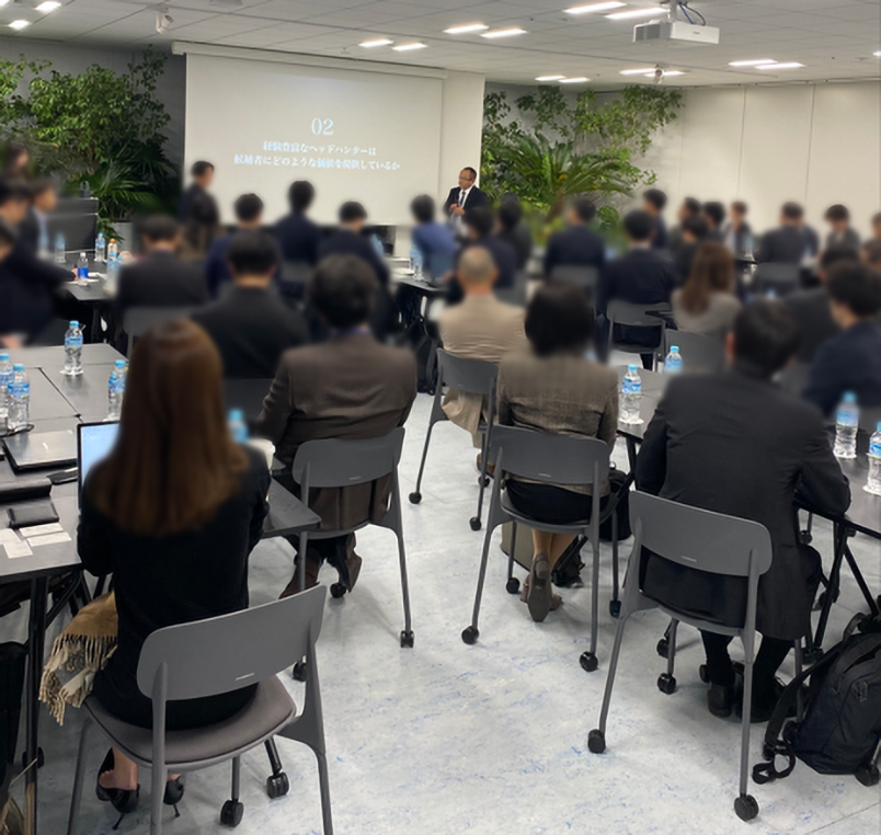 50名を超えるヘッドハンターの皆様にご参加いただき、ヘッドハンティング業界のこれからの在り方や、企業・個人双方にとっての価値提供についてお話しさせていただきました。
